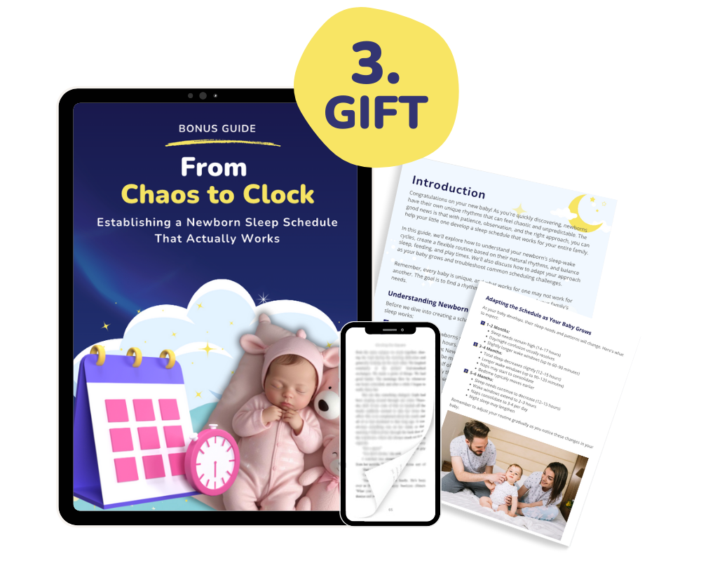 ALSO INCLUDED: 🎁 5 FREE BONUS GIFTS 🎁 that address your most pressing newborn sleep challenges (total value of $184)